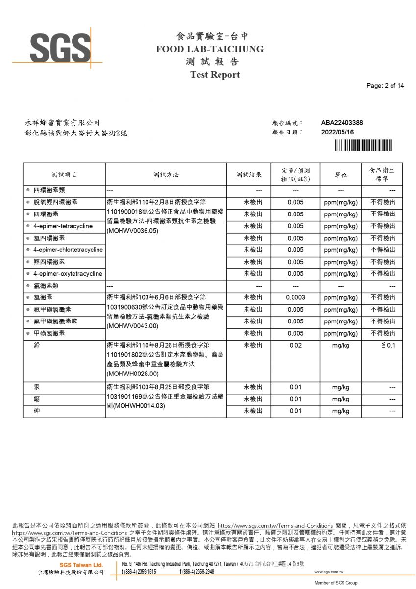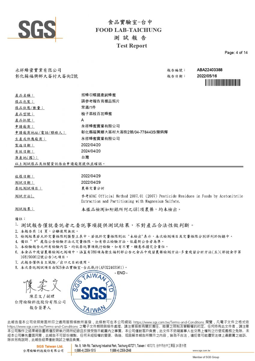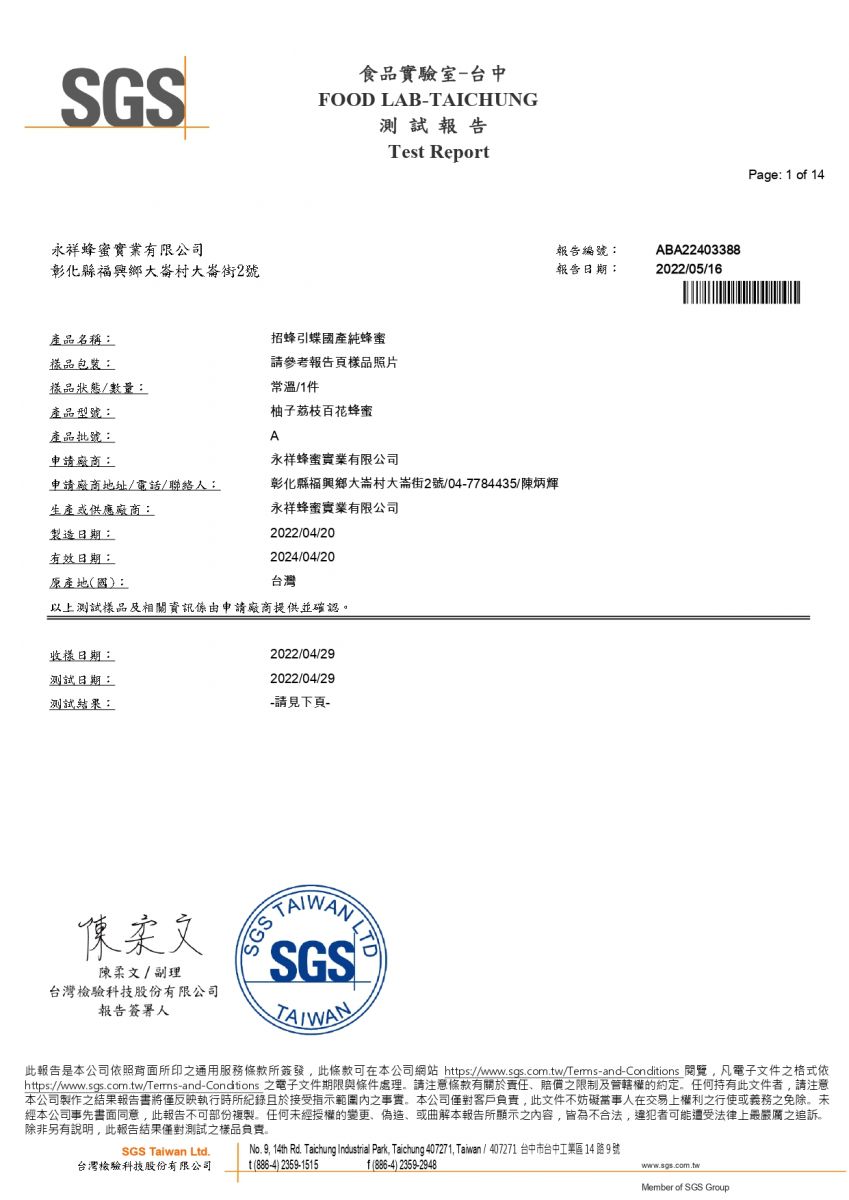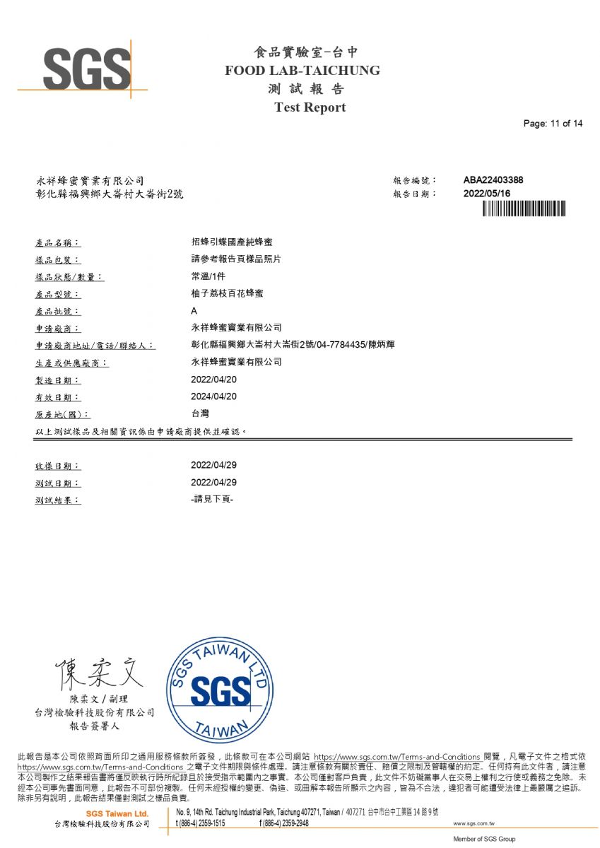 2022年檢測報告_柚子荔枝百花蜂蜜